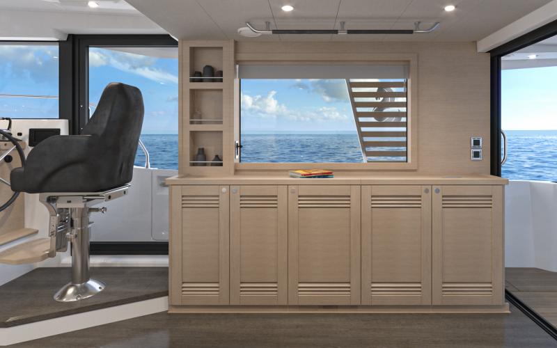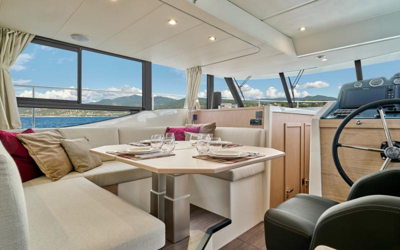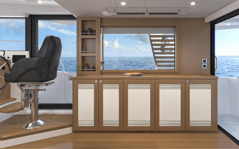 De stuurstand met aangrenzende zijdeur die leidt naar de stuurboord midscheeps cleat & bulwark gate zorgt voor gemakkelijk aanleggen en circulatie. De stuurstand heeft ruimte voor 2 x 12" Raymarine MFD schermen en het Beneteau Ship Control systeem. Daarnaast kunnen een achterdek docking camera, achtersteven docking lichten en het Cummins geïntegreerde joystick systeem worden geïntegreerd voor een stress-vrije docking ervaring.