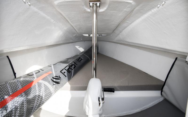 De First range doet geen enkele concessie op het gebied van veiligheid aan boord. De materiaalkeuze en productieprocessen zijn allemaal gebaseerd op de allernieuwste technologieën om kracht te combineren met een licht gewicht en ergonomische eenvoud. De spiegel, kuip, kuip, dek en indeling zijn zorgvuldig ontworpen voor veilig zeilen en maximale werkruimte voor de bemanning, terwijl de uitrusting en dek hardware de nadruk leggen op het gemak van zeilen en het hanteren van de boot.